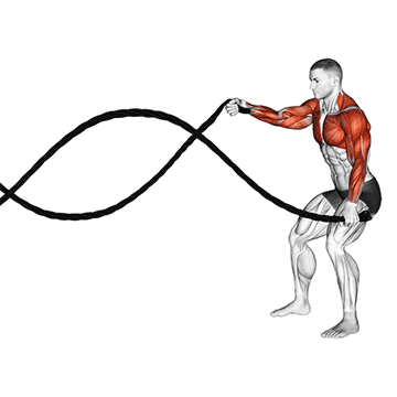 Segure as cordas fixas no chão e realize movimentos alternados ou simultâneos, gerando ondas rápidas.